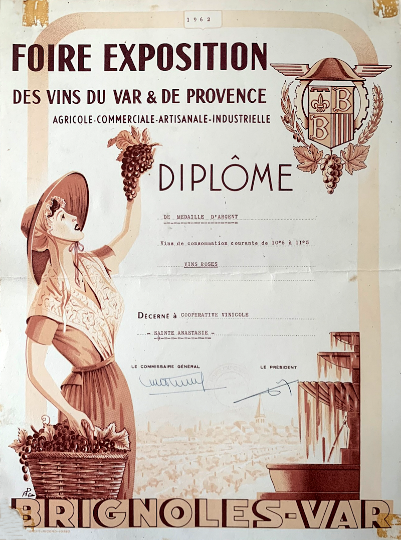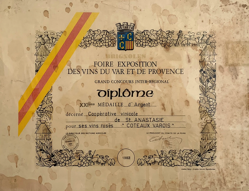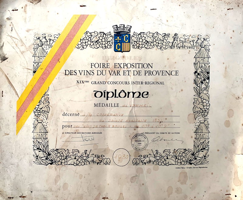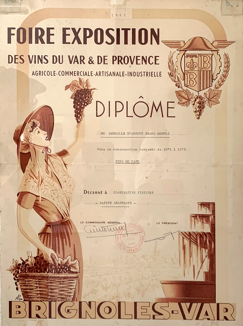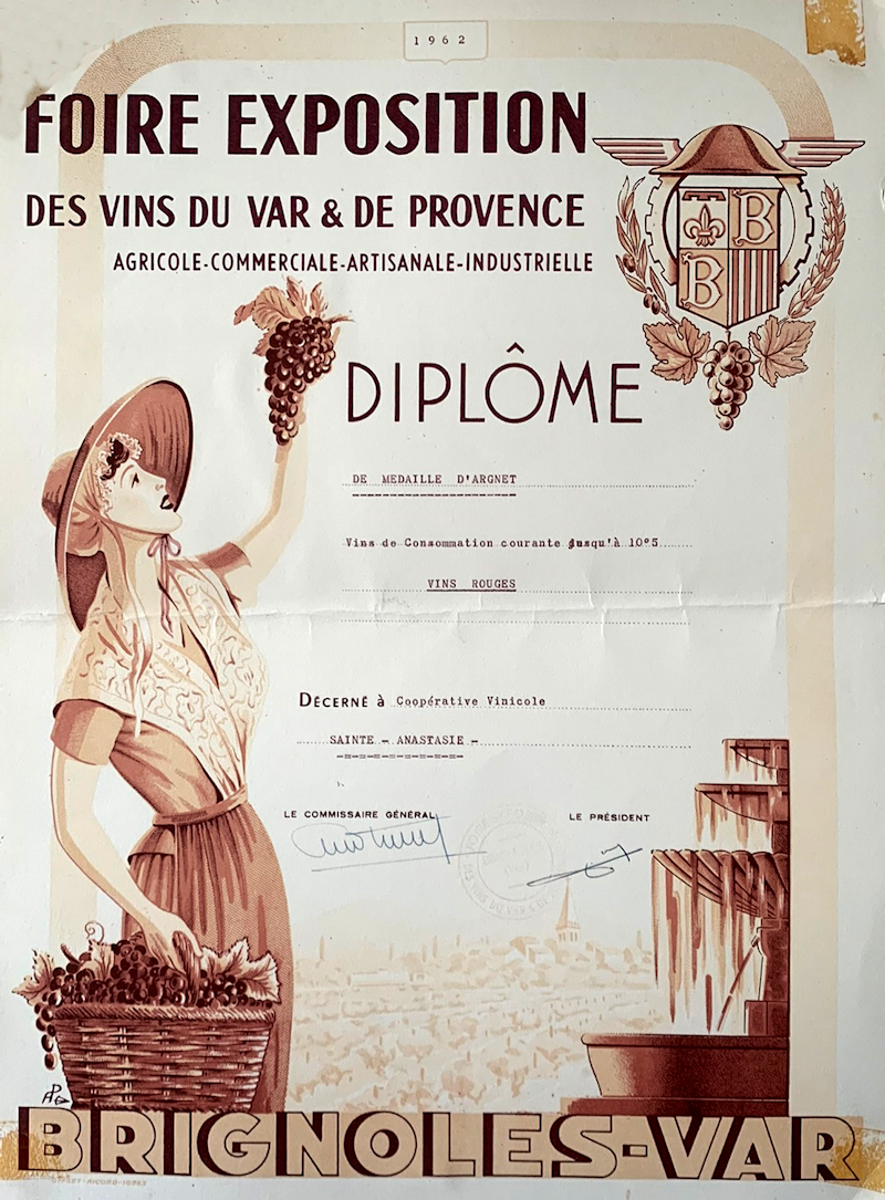 Quelques documents et distinctions de la Coopérative Vinicole de Sainte-Anastasie