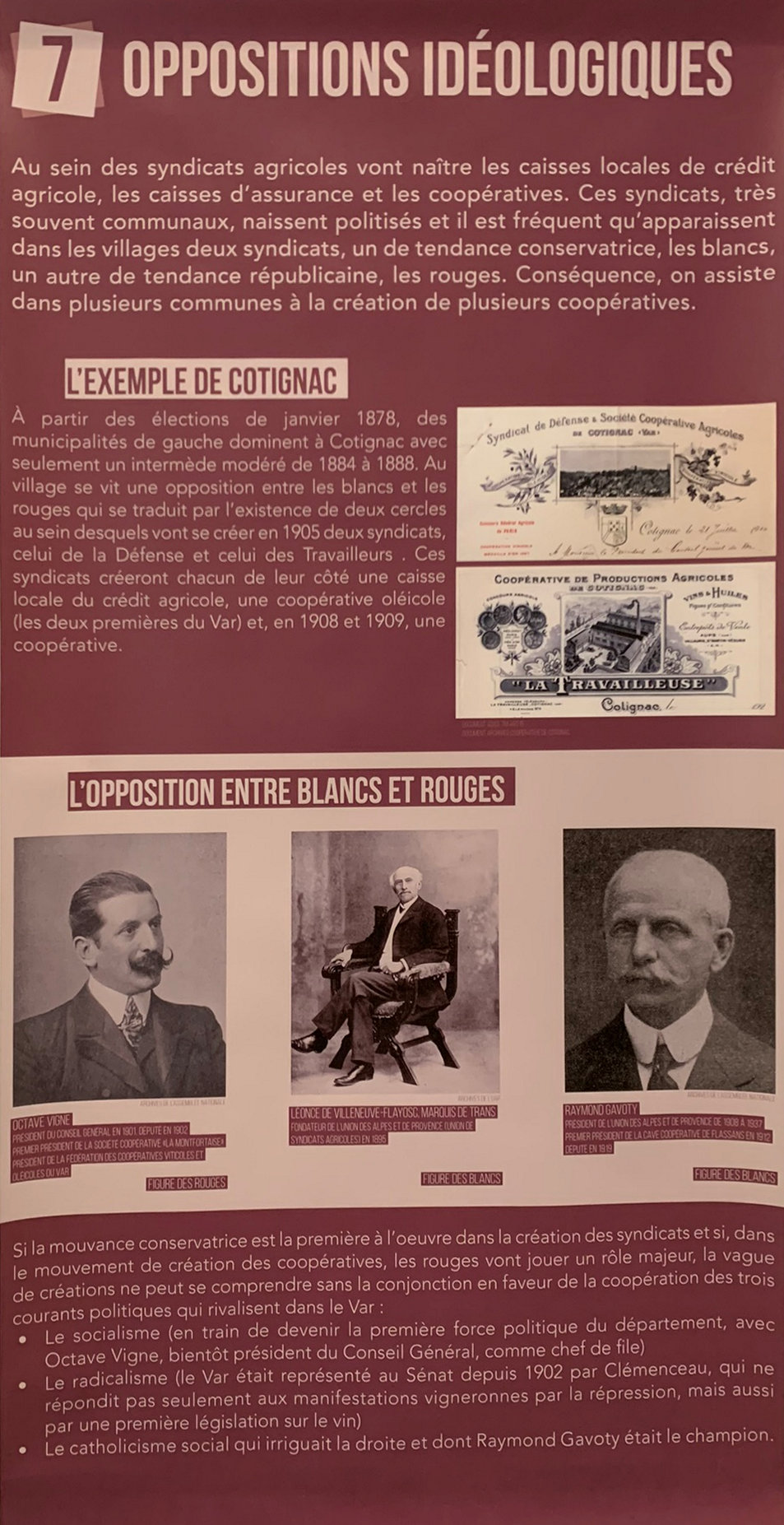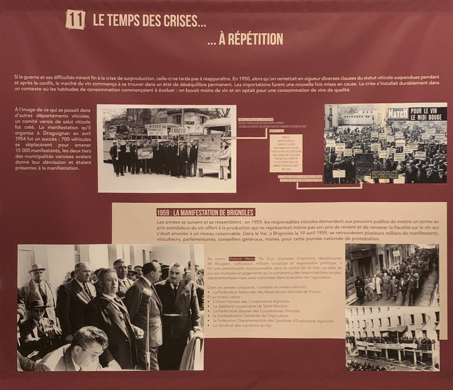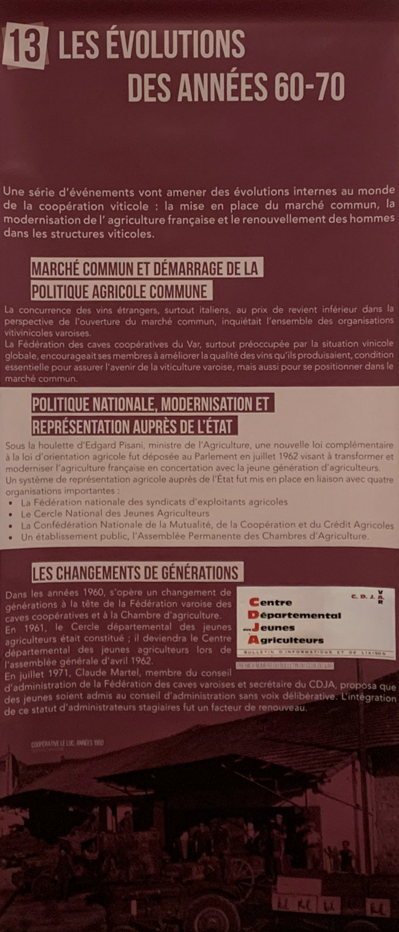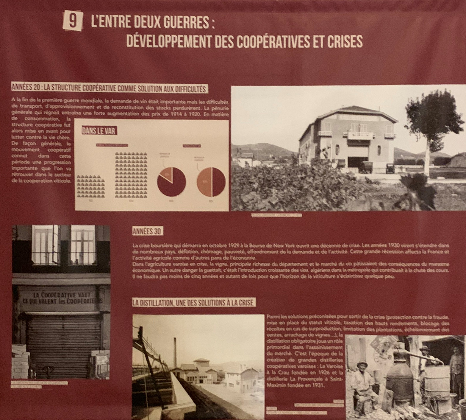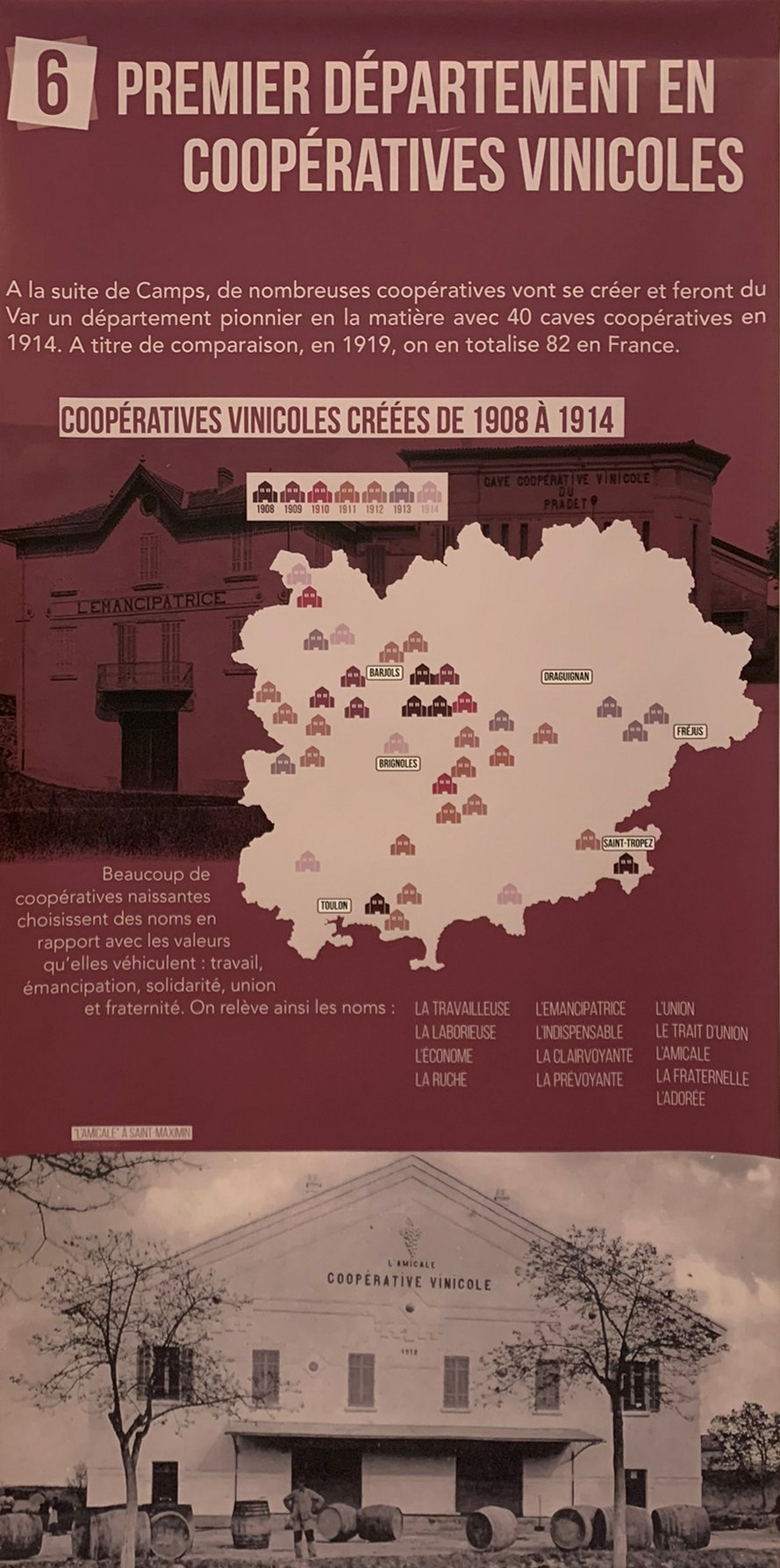 La Musée des Gueules Rouges de Tourves et l'Agglomération Provence Verte nous ont aimablement prêté les panneaux de l'exposition dont il sont à l"origine et qui retrace la création et l’évolution des caves coopératives vinicoles dans le Var depuis le début du vingtième siècle.