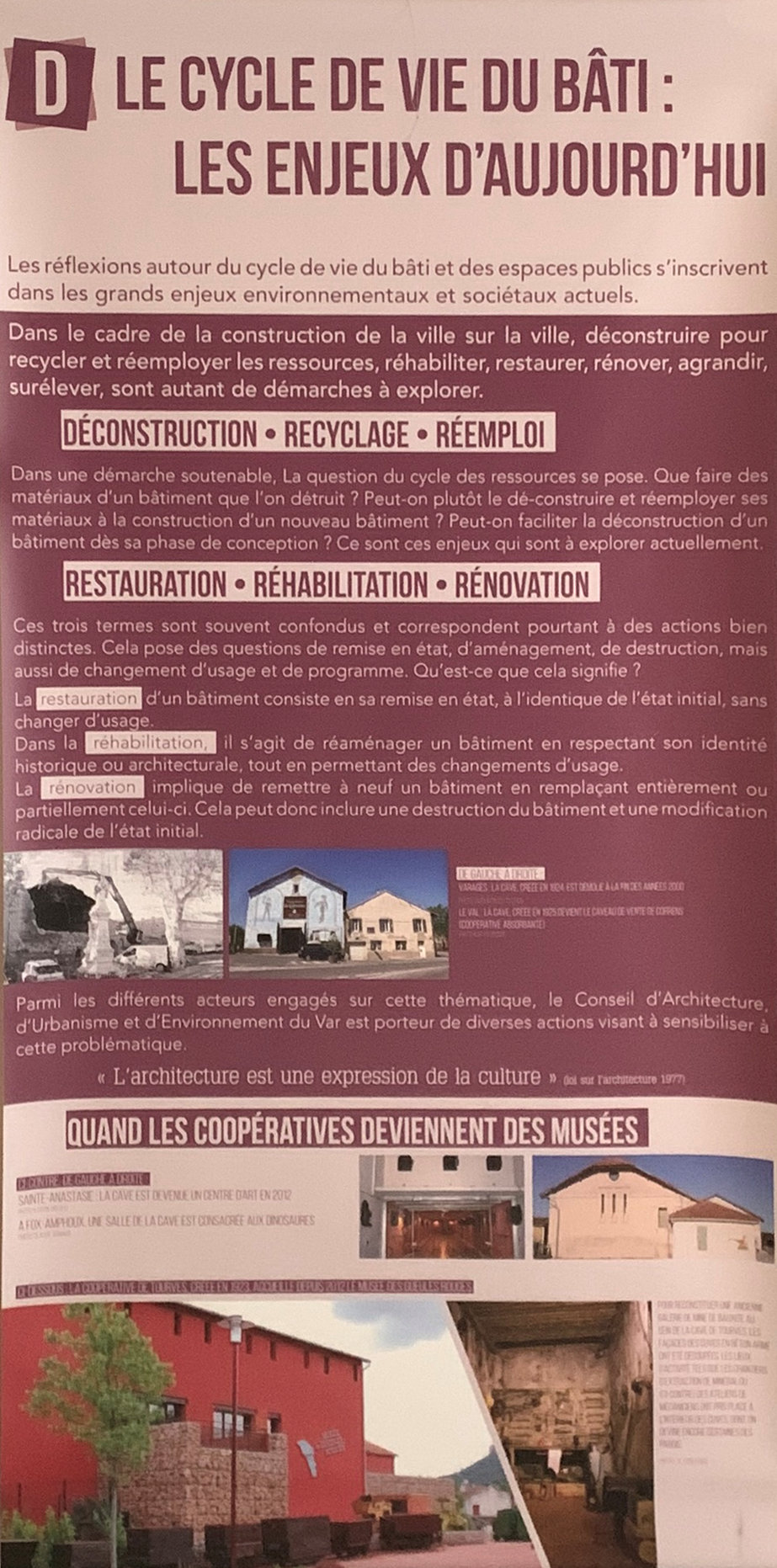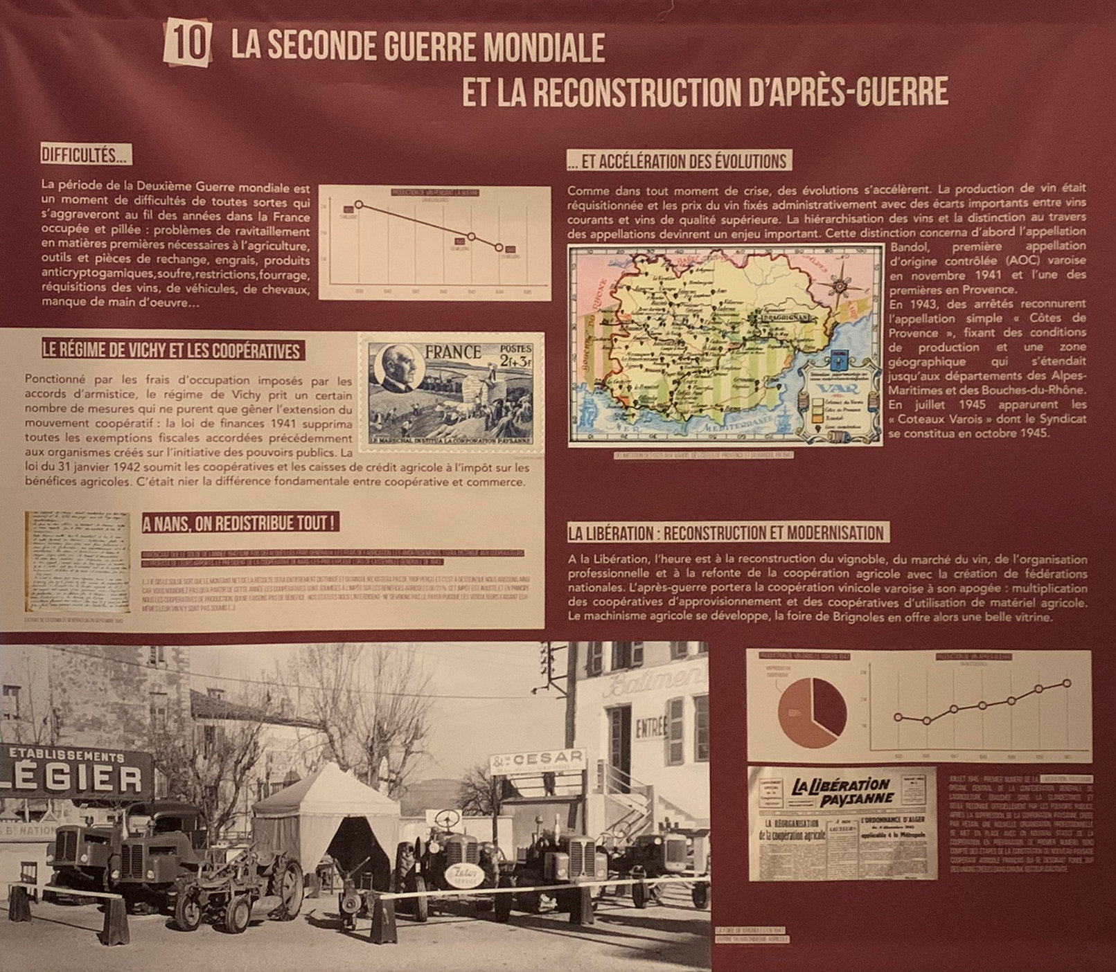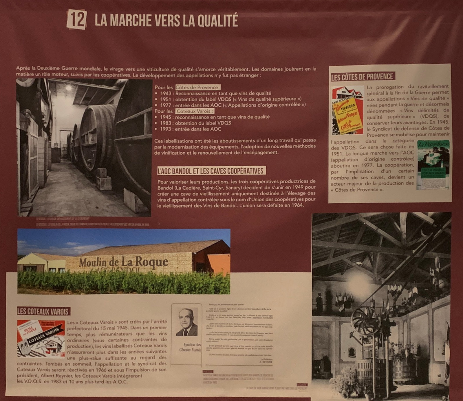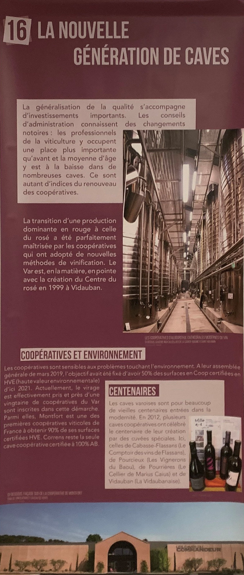 La Musée des Gueules Rouges de Tourves et l'Agglomération Provence Verte nous ont aimablement prêté les panneaux de l'exposition dont il sont à l"origine et qui retrace la création et l’évolution des caves coopératives vinicoles dans le Var depuis le début du vingtième siècle.