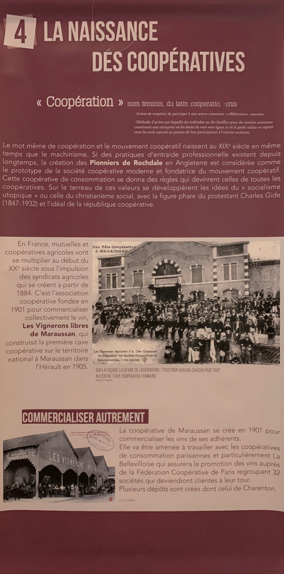 Au sein même des locaux originels de cette institution (aujourd'hui Centre Culturel Albert Garnier), nous avons présenté son histoire, le résultats de nos recherches sur les personnes, salariés ou viticulteurs coopérateurs qui ont contribué à son activité, et des explications sur le fonctionnement technique et administratif qui ont permis la production du vin du village pendant près de huit décennies.