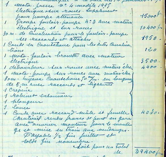 - La fourniture d’une nouvelle pompe pour 3 900Frs