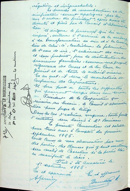 Le Conseil décide de confier les fonctions de gérant, caviste et comptable à M. BOUISSON Achille. Il touchera la somme de 350 Frs par mois. Il sera tenu d’habiter dans les appartements de la Coopérative. Sa femme aura la charge du fonctionnement de la Grande Bascule et recevra un salaire journalier qui sera fixé ultérieurement.