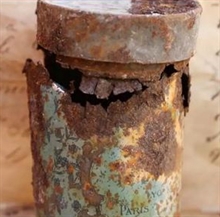 La boîte rouillée dans laquelle a été retrouvée la lettre