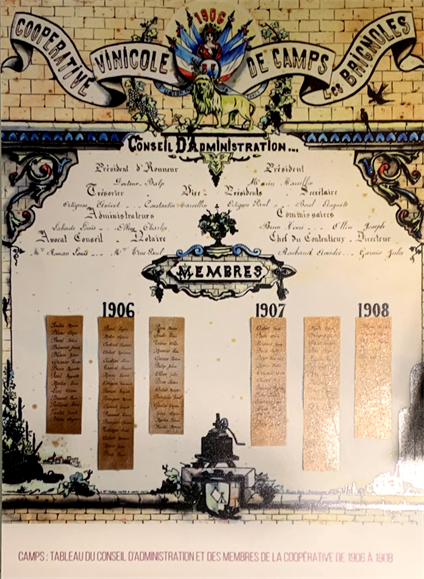 N’attendant rien de l’action Législative, mais tout de l’action syndicaliste, avec 100 petits propriétaires de la Commune de Camps, nous avons formé une association sous le nom de Coopérative Vinicole de Camps.