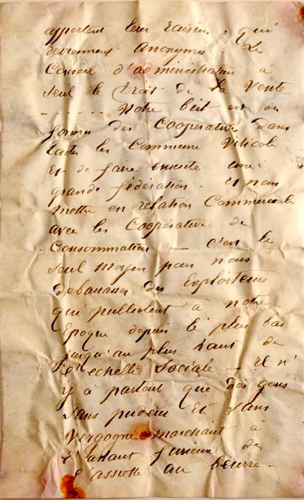 Voici de larges extraits de ce texte qui permettent de comprendre ce qui a motivé la création des caves coopératives :